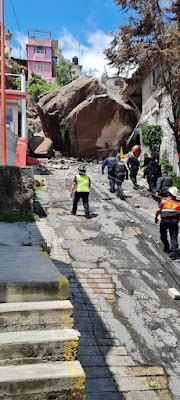 Tlalnepantla, Méx.- Desgajamiento en el cerro del Chiquihuite en Tlalnepantla en la colonia Lázaro Cárdenas 2a. Sección, hasta el momento de manera preliminar se reporta el rescate de una persona lesionada, una persona fallecida y se realiza la búsqueda de seis adultos y cuatro menores de edad.